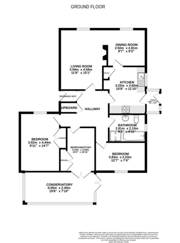 Location, Outlook, Condition, Garden, Further Potential.| Room | Size (m) | Size (feet) | |